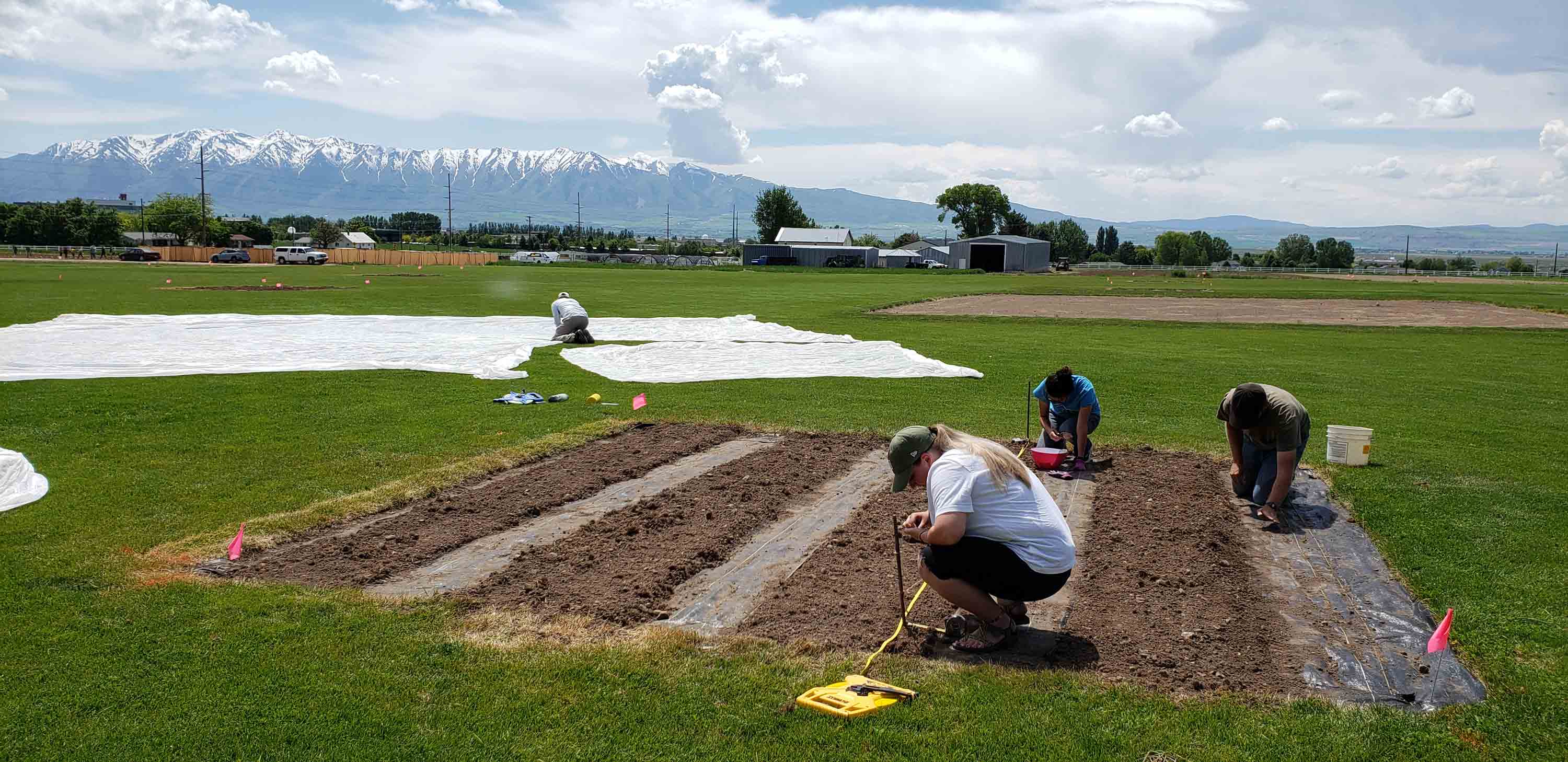 為了實現(xiàn)這一目標(biāo),我們建立了六塊相同的草坪地塊和六塊百日草切花(一種流行且具有代表性的城市園林作物)地塊,指定了灌溉時間處理,并配備了大量儀器來測量水-能量平衡。使用的遠(yuǎn)地點傳感器包括用于測量表面和冠層溫度的紅外輻射計 (SI-411-SS)以及網(wǎng)絡(luò)輻射計 (SN-500-SS)測量輻射的四個分量并計算反照率。這些地塊還配備了空氣溫度和濕度傳感器、土壤濕度和溫度傳感器、灌溉流量計和收集杯,而該田地還設(shè)有由 USU 氣候中心管理的氣象站。現(xiàn)場每 15 分鐘總共自動進行 329 次測量,而每周 3 次手動收集 162 次測量結(jié)果。這項研究利用了 SDI-12 數(shù)字輸出,這是傳感器技術(shù)中最重要的進步之一,可以使用最少的數(shù)據(jù)記錄設(shè)備。