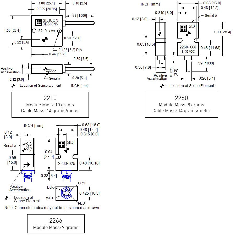 2210型號采用了標(biāo)準的1英寸方形封裝,而2260和2266則是為適應(yīng)緊湊空間設(shè)計的小尺寸產(chǎn)品。其中,2210和2260配備了集成的3英尺電纜,2266則配置了可定制電纜長度并方便重新定位的連接器。所有這三個型號都使用了密封且低噪音的SDI表面貼裝加速計,并由SDI進行了單獨的測試、編程與校準。