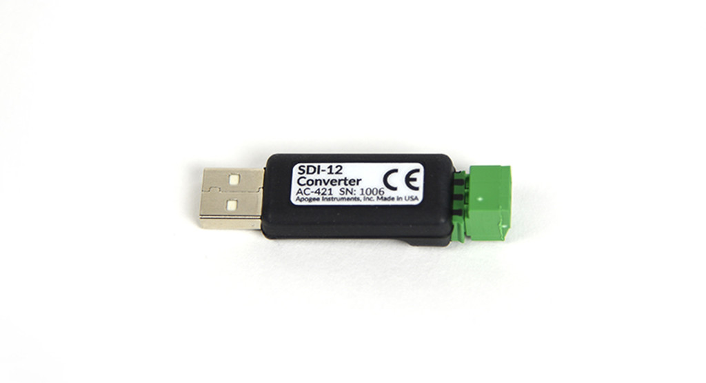 AC-421的一側(cè)有一個(gè)USB接口,可以插到電腦上。AC-421的另一側(cè)有+ 12v out, GND和SDI-12數(shù)據(jù)通道,用于連接任何標(biāo)準(zhǔn)SDI-12傳感器(為了正確操作,請先連接地線)。