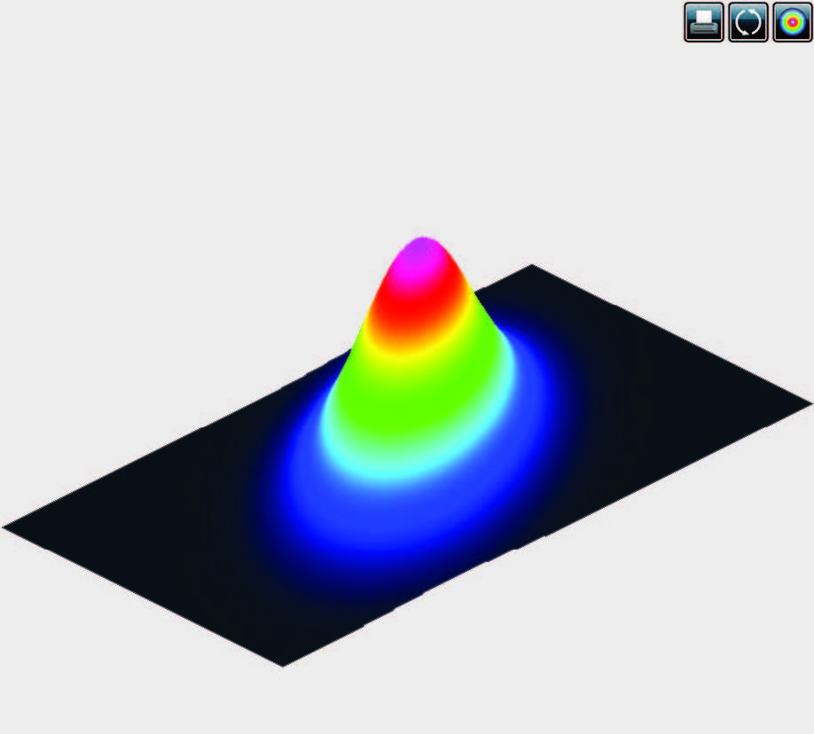 三維顯示屏 —— 三維顯示屏可顯示光束的實際形狀,可輕松對圖像進行縮放、移動和旋轉(zhuǎn)。重置按鈕非常有用,可允許用戶將數(shù)據(jù)返回原始配置。此顯示屏還帶有一個可以 BMP 格式保存最后圖像的打印屏幕按鈕。