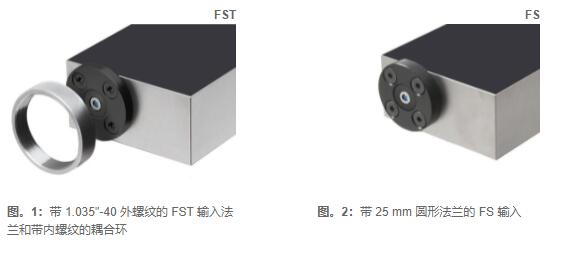 自由空間輸入設(shè)計(jì)為帶螺紋耦合環(huán)的 1.035"-40 螺紋法蘭 (FST) 或無螺紋的 25 mm 圓形法蘭 (FS)。這兩種類型都與來自不同制造商的光學(xué)配件廣泛兼容,例如透鏡、管、籠式系統(tǒng)、光學(xué)適配器等。