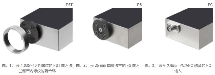 兼容光學(xué)平臺(tái)(自由空間)和光纖自由空間輸入設(shè)計(jì)為帶螺紋耦合環(huán)的 1.035"-40 螺紋法蘭 (FST) 或無螺紋的 25 mm 圓形法蘭 (FS)。這兩種類型都與來自不同制造商的光學(xué)配件廣泛兼容,例如透鏡、管、籠式系統(tǒng)、光學(xué)適配器等。