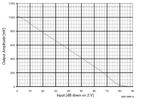 縮放 | 12.5 mV/dB,250 mV/十進(jìn)制(@ 50 Ω 負(fù)載) | |
