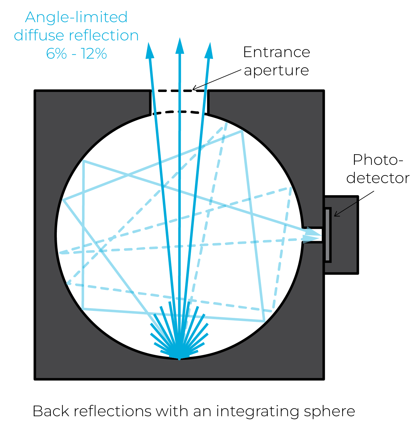 熱檢測器和水熱量計(jì)以朗伯方式漫反射 10%-15%的入射光,而 IS 系列的積分球通過其光圈只定向反射 6%-12%的入射光。這有助于提高測量環(huán)境中的安全性,更容易處理背面反射。