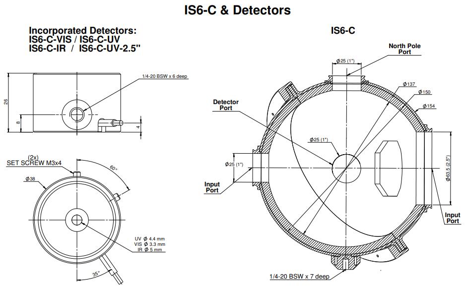 IS6-C-VIS 是一個 6 英寸積分球(內(nèi)部 5.3 英寸),帶有用于準直 (C) 光束的硅探測器。IS6-C-VIS 帶有 VIS 檢測器,校準范圍為 400 至 1100nm,可測量高達 30W 的功率。