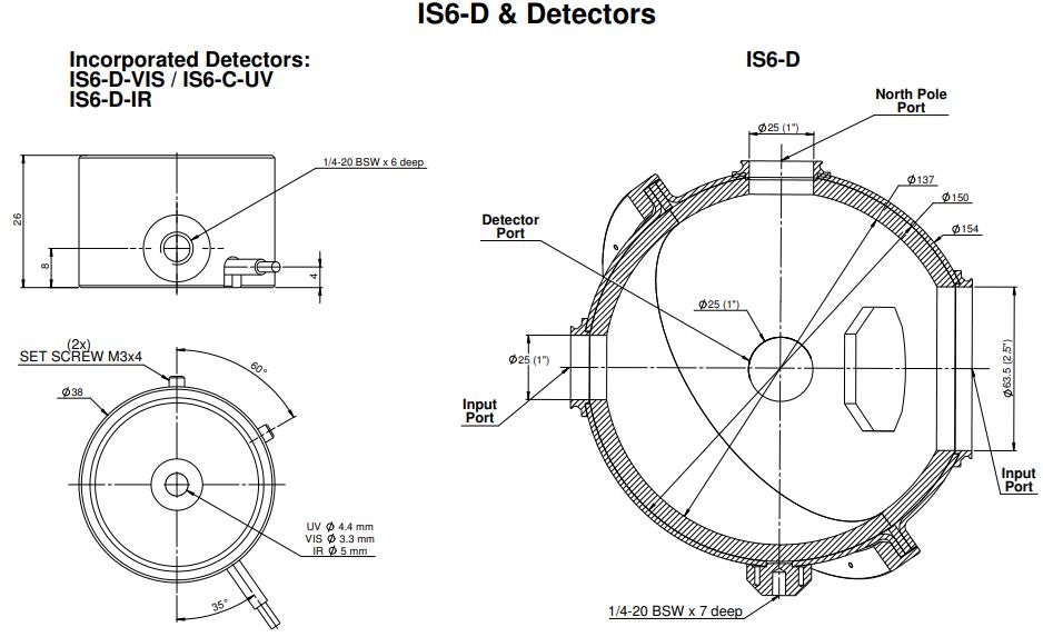 IS6-D-VIS 是一個(gè) 6 英寸積分球(內(nèi)部 5.3 英寸),帶有用于發(fā)散 (D) 光束的硅檢測器。IS6-D-VIS 帶有 VIS 檢測器,校準(zhǔn)范圍為 400 至 1100nm,可測量高達(dá) 30W 的功率。