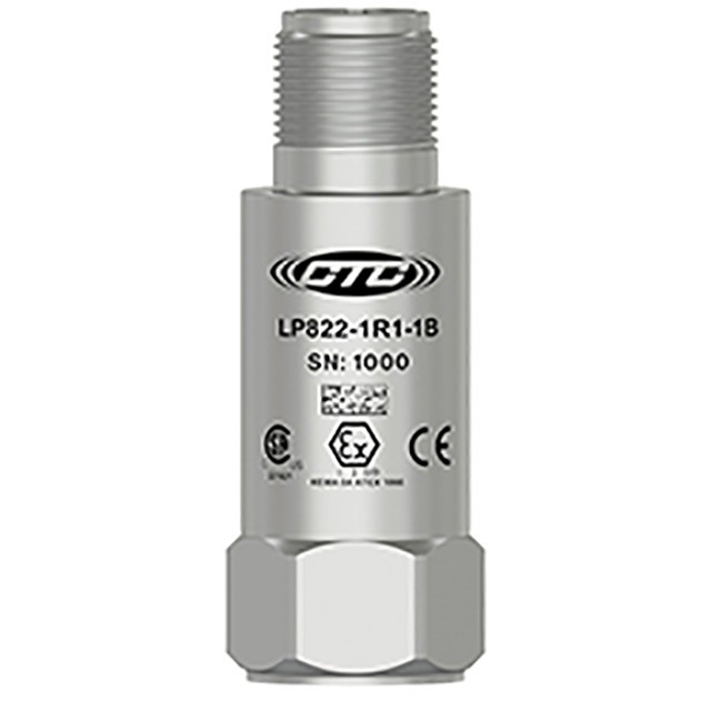 低電容,本質(zhì)安全I(xiàn)EC認(rèn)證(IECEX)環(huán)路功率傳感器,4-20 MA輸出與加速度中的振動成比例,頂部出口2針連接器