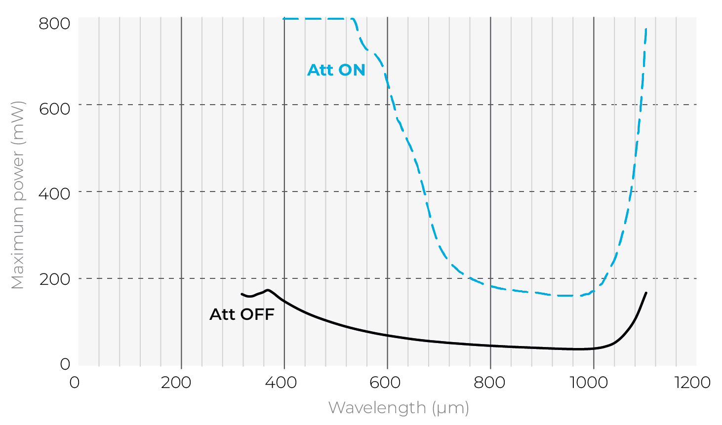 1. 532 nm,附有衰減器。查看其他波長(zhǎng)的最大功率曲線。
