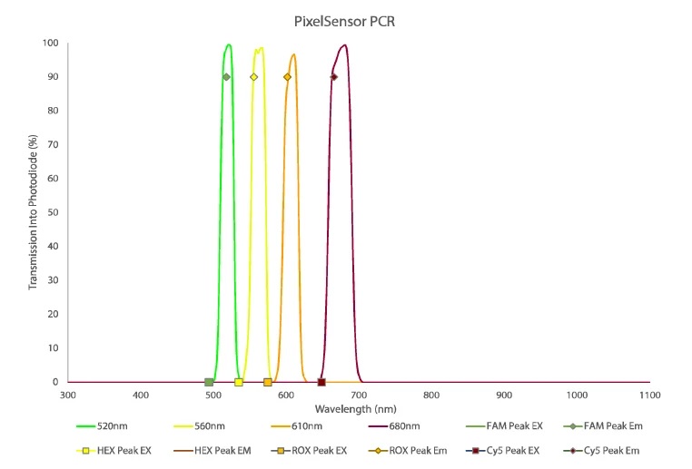 一個 PixelSensor? 可替代多個組件,幫助 OEM 縮小多波長儀器。 憑借窄帶 VIS-NIR 選擇性,傳感器陣列可帶或不帶 OEM 電子板。
