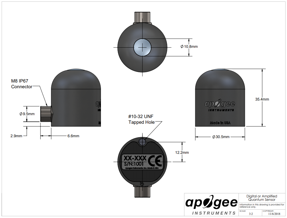 SQ-421X SDI-12數(shù)字輸出量子傳感器圖紙: