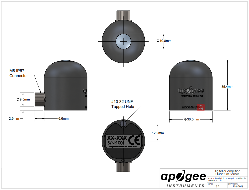 SQ-422X Modbus數(shù)字輸出量子傳感器圖紙: