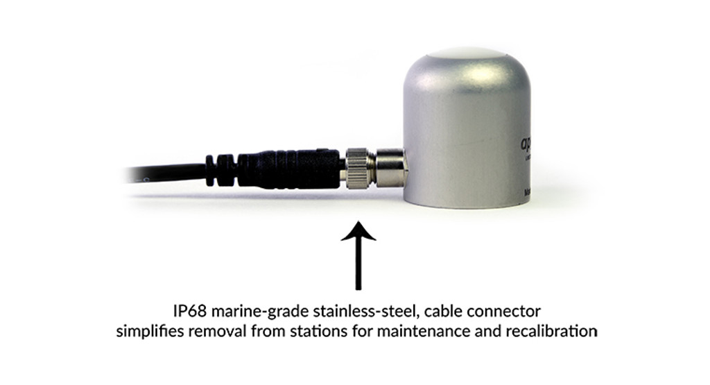 該傳感器的模擬版本 (SQ-640) 帶有內(nèi)聯(lián)電纜連接器,距離傳感器頭 30 厘米,可作為長電纜尾纖傳感器標(biāo)準(zhǔn)使用,或通過擰下連接器與我們的 microCache 藍(lán)牙微型記錄器一起使用,丟棄較長的電纜,然后將傳感器擰到 microCache 上的配合連接器上。