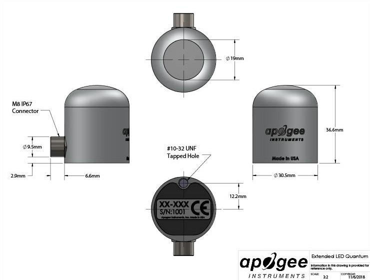 SQ-647 量子光污染是一款采用 SDI-12 通信協(xié)議的數(shù)字傳感器。該傳感器采用堅固的鋁制外殼,可完全浸入水中,可承受惡劣條件,并采用預(yù)鍍錫尾纖引線端接高質(zhì)量電纜,可輕松連接到數(shù)據(jù)記錄器和控制器。傳感器電纜包括一個 IP68 防水的不銹鋼電纜連接器,以簡化從持久安裝中拆卸和更換傳感器以進(jìn)行維護(hù)和校準(zhǔn)的過程。量子光污染傳感器的典型應(yīng)用包括室內(nèi)溫室或生長室中植物冠層的傳入 PFD 測量,以及相同環(huán)境中的反射或冠層下(透射)PFD 測量。 由于這種特殊的量子光污染傳感器上的檢測器對波長高達(dá) 1100 nm 的輻射敏感,超出了影響植物的波長范圍,我們建議僅在使用 LED 燈的室內(nèi)種植環(huán)境中使用 SQ-647 傳感器。