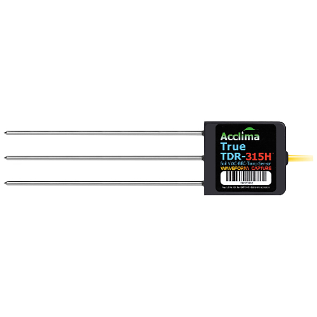 TDR-315H 是以前的 Acclima TDR-315 和 TDR-315L 土壤濕度傳感器的替代品。它與這些傳感器完全兼容,但包含多項(xiàng)改進(jìn)。它是一個(gè)完整的集成時(shí)域反射計(jì),結(jié)合了快速波形生成和數(shù)字化功能以及精確的 5 皮秒分辨率時(shí)基和高度復(fù)雜的波形數(shù)字化和分析固件,可提供土壤傳播波形的真實(shí)時(shí)域分析。其形狀因數(shù)專為較淺的水平安裝而設(shè)計(jì),在這種情況下,它被迫進(jìn)入已挖掘到所需測量深度的溝槽的側(cè)壁。