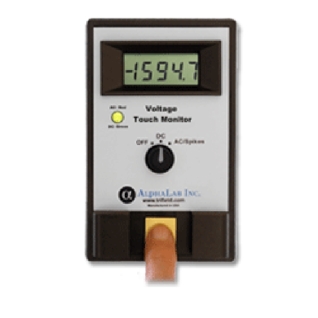 監(jiān)視器讀取手指上的電壓(與身體其他部位的電壓相同)。它可以在兩種模式下檢測(cè)到低至1/10伏的電壓: 直流和交流/尖峰(ESD 瞬態(tài))。在直流模式下,顯示的電壓或正或負(fù),通常是非常低的,如果正在磨損和正常工作。更高的直流電壓(即使接地)發(fā)生,如果直流電離器是吹得太近,或如果人摩擦高靜電材料或接觸金屬在直流電位。如果不使用個(gè)人接地,任何直流信號(hào)都可能隨著時(shí)間的推移而累積,而直流模式繼續(xù)顯示瞬時(shí)體電壓,因?yàn)樗l(fā)生了變化。在 AC/Spikes 模式下,任何至少1/2毫秒長(zhǎng)的暫態(tài)電壓尖峰都會(huì)臨時(shí)顯示。如果有幾個(gè)連續(xù)的峰值,則只顯示最高值,而不考慮極性。如果信號(hào)是一個(gè)重復(fù)(交流)波,峰值電壓顯示,但總是作為一個(gè)正數(shù)。即使當(dāng)正確的接地磨損,幾十伏特經(jīng)常發(fā)生瞬變和交流電。直流和交流的最大誤差僅為讀數(shù) +/-0.1伏特的2% 。