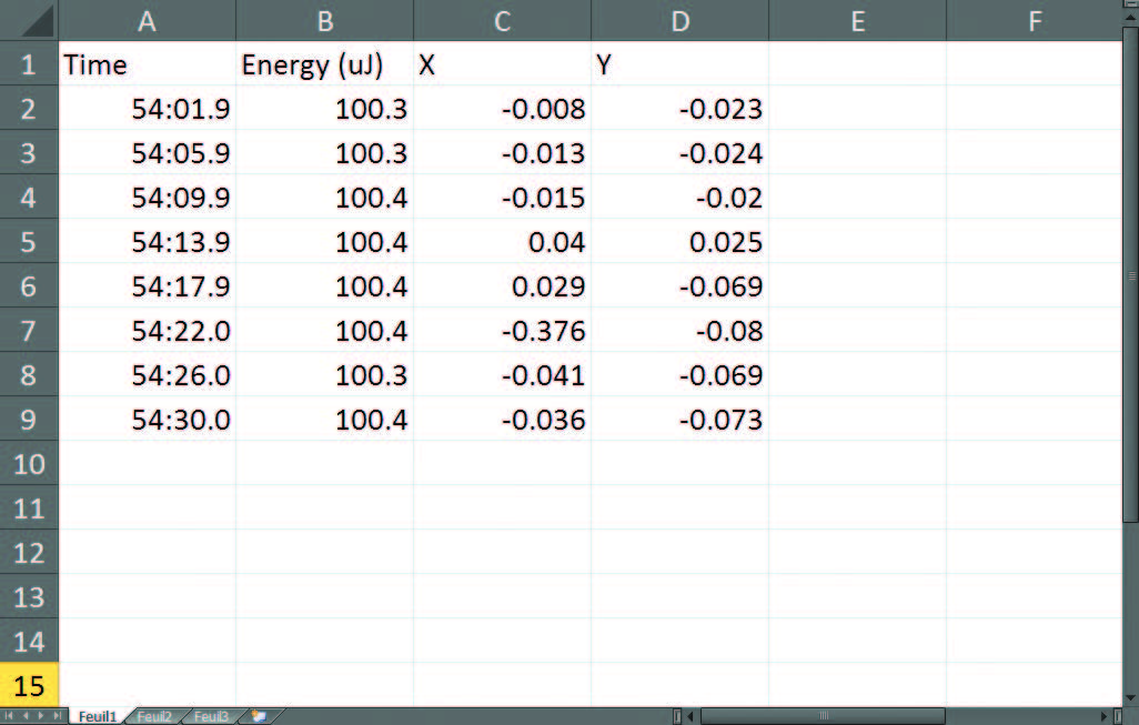 另一個(gè)非常實(shí)用的功能是“數(shù)據(jù)記錄”。通過這一功能,您可以設(shè)置 QUAD-4Track 以跟進(jìn)激光在過去數(shù)分鐘、數(shù)小時(shí)甚至數(shù)天內(nèi)的位移、能量和/或功率。需要在激光器熱機(jī)時(shí)測(cè)量激光的“光束偏轉(zhuǎn)”嗎?使用數(shù)據(jù)記錄就行了!需要測(cè)量不同激光重復(fù)率或能量級(jí)對(duì)應(yīng)的光束位移嗎?數(shù)據(jù)記錄可以幫您測(cè)量!