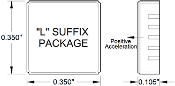 The sensitive axis of the Model 1522 is perpendicular to the bottom of the package, and with positive acceleration resulting from a positive force pushing on the bottom of the package. The seismic center is located on a centerline through the dual sense elements and halfway between them.
