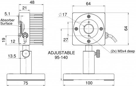 The 30A-P-17 is a thermal power/energy laser measurement sensor for short pulsed lasers with a 17mm aperture. It can measure from 60mW to 30W and from 40mJ to 30J. It has the P type volume absorber and covers the spectral range from 0.15 to 8μm. The sensor comes with a standard 1.5 meter cable for connecting to a meter or PC interface.
