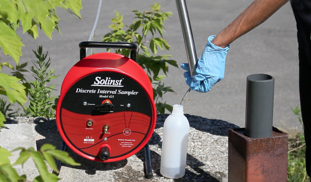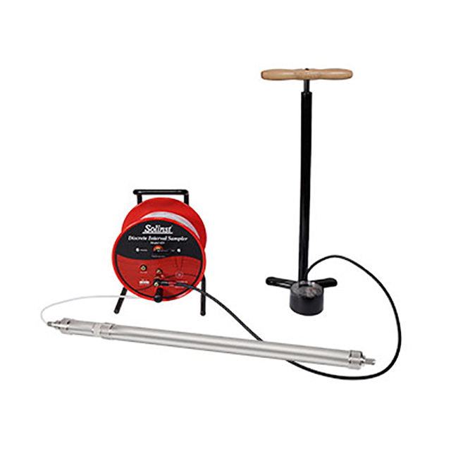 The Model 425 Discrete Interval Sampler is a stainless steel groundwater sampler with LDPE tubing mounted on a convenient reel and is pressure activated using a hand pump. The sampler is pressurized before being lowered, and upon retrieval, to prevent mixing. Pressure is released at the desired depth to obtain a sample. Ideal for sampling from depths as much as 90 m (300 ft) below water level.