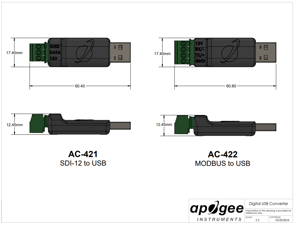 The AC-421 enables easy programming of any SDI-12 sensor by simply connecting the sensor to a computer's USB port.
