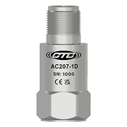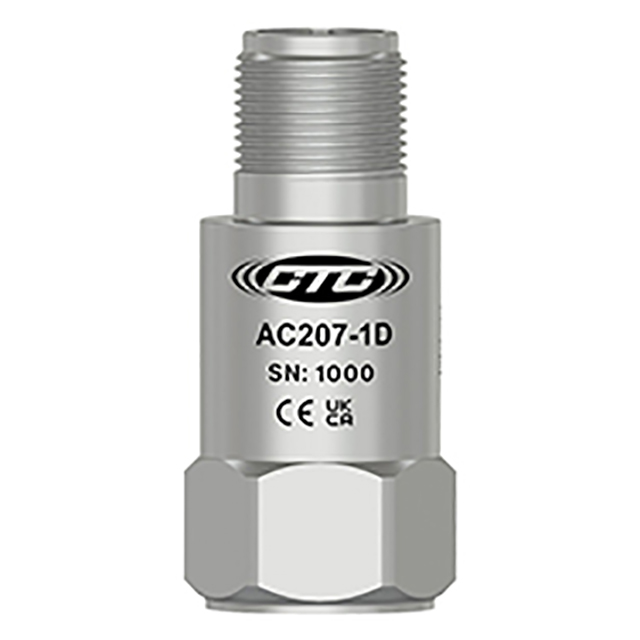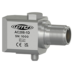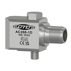 High Temperature IEPE Accelerometer, 325 °F (162 °C) Max Temp, Top Exit 2 Pin Connector, 100 mV/g, ±10%