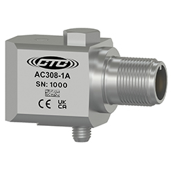 High Temperature IEPE Accelerometer, 325 °F (162 °C) Max Temp, Side Exit 2 Pin Connector, 100 mV/g, ±10%