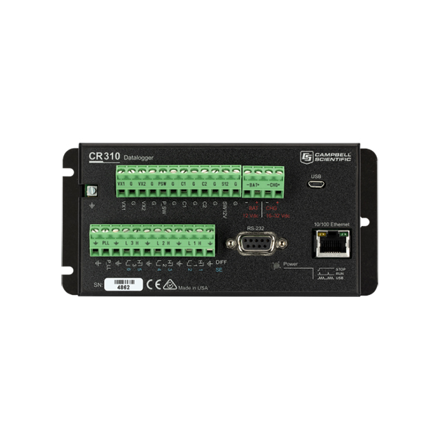 • Description: The CR310 is a multi-purpose, compact, low-cost measurement and control data logger that includes an integrated 10/100 Ethernet port and removable terminal connectors. This entry-level data logger, wi