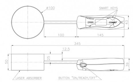 The Comet 10K is a portable power puck laser sensor with a 100mm aperture. It can measure power from 200W to 10kW by sampling a 20s exposure of laser power. It has a broadband coating and is calibrated for 0.98 – 1.07μm and 10.6μm.