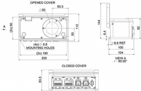 Dimensions | 200 Lx123 Wx144 H (mm) - Open, 200 L x 100 W x 84 H(mm)-Closed Connectors: AIDA, DB9 |