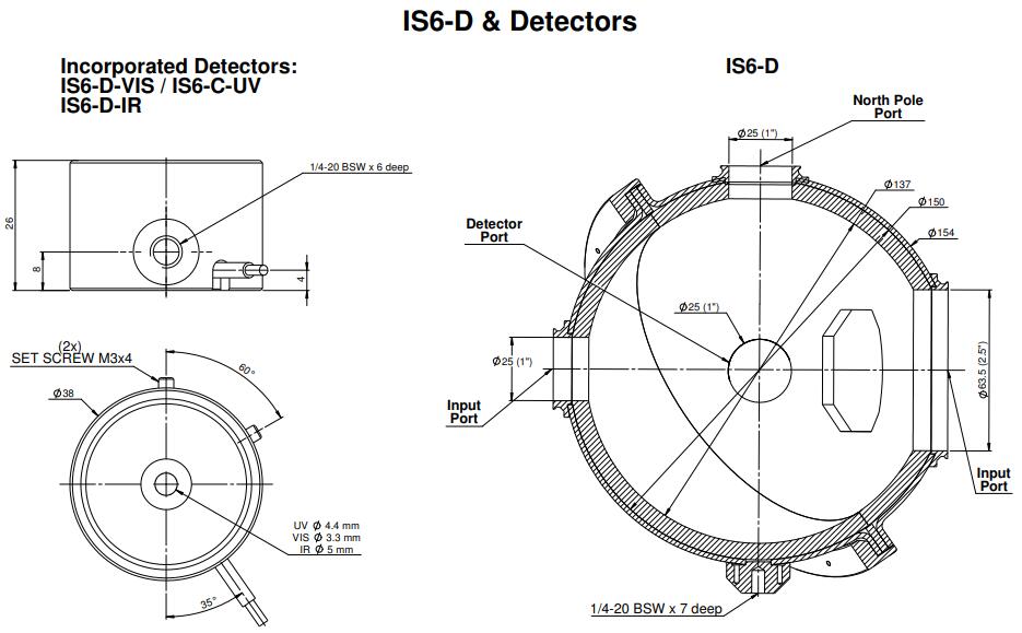 The IS6-D-UV is a 6” integrating spheres (5.3” inside) with a Silicon detector for use with divergent (D) beams. The IS6-D-UV comes with a UV detector, is calibrated from 200 to 1100nm and can measure up to 1W.