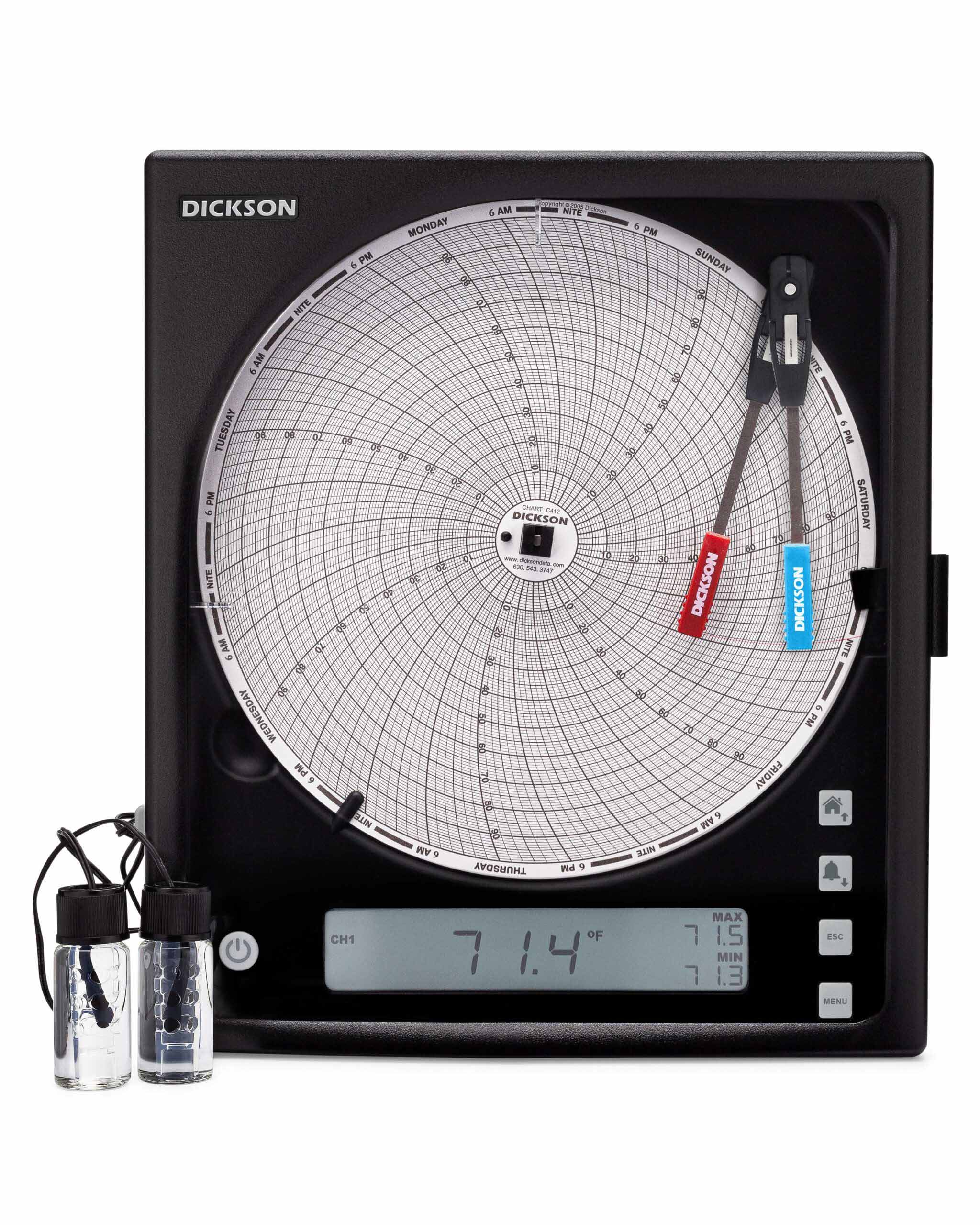 8″ (203mm) Chart Recorders offer the largest resolution out of any chart recorders. Now featuring Replaceable Sensors?, calibrating your chart recorder is easier than ever. All chart recorders feature a large 8″ chart and user-selectable recording timeframes (1-day, 1-week) and ranges.