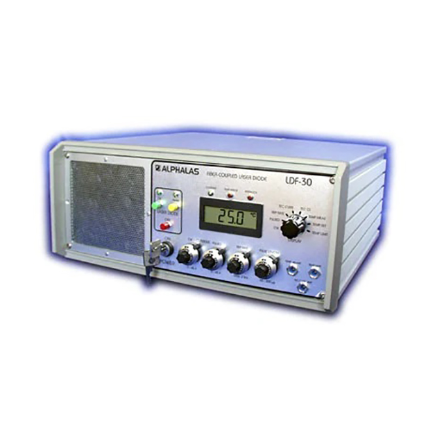 Due to newest electronic design and production technology ALPHALAS provides the most compact solution for a ready-to-use fiber-coupled laser diode worldwide, combined with the most universal laser diode driver. The option with built-in frequency generator expands the capabilities for pulsed mode of operation. Thus, the laser diode can be operated in CW, pulsed, or combined CW/pulsed mode (biasing). The back-lighted liquid-crystal display monitors numerous important parameters as laser diode current, TEC module current and current limit, measured and set LD temperature, and temperature limit.
