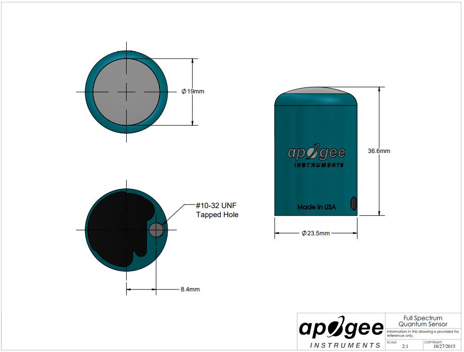 Rugged and easy to use:Quantum sensors use precision silicon photodiode detectors, custom filters, and acrylic diffusers, all mounted in self-cleaning, dome shaped, anodized aluminum sensor heads. The sensor head is encapsulated with epoxy resin and can be used for many years in harsh environments, including underwater. The hand-held instrument is connected by cable and can display real-time readings, record samples, and record average intensity and daylight integration (DLI) measurements. Unlike the sensor head, the hand-held instrument is not waterproof.