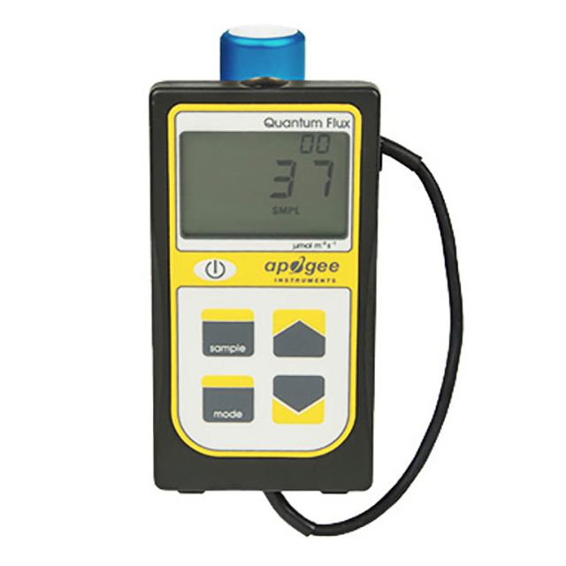 The instrument has sampling and logging modes and will record in mol m ˉ2 d ˉ1 Is the comprehensive daily total amount in units. The sampling mode will record up to 99 manual measurements. The logging mode will turn the instrument on/off and take measurements every 30 seconds. Every 30 minutes, the instrument will average 60 30 second measurements and record the average value into memory. The instrument can store up to 99 average values. Once it is full, it will begin to overwrite the old measured values with new ones. The combined daily total will be recorded from 48 average measurements (over a 24-hour period). The sample and log measurements can be viewed on the LCD screen or by downloading data to the computer, but the combined daily totals can only be viewed by downloading data to the computer. AC-100 communication cable (standard USB cable does not work) and Apogee AMS software are required to download data to the computer.