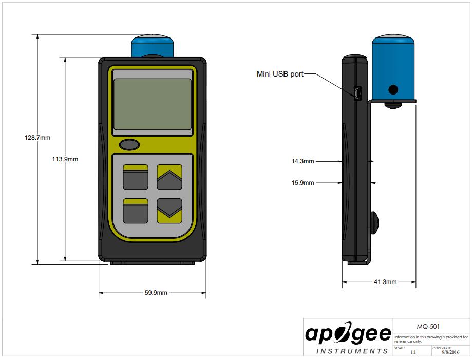 • Description: MQ-501 is designed as an easy to use hand-held instrument for spot check and measurement. The instrument includes AM-001 instrument mounting bracket for mounting the sensor on the horizontal surface o