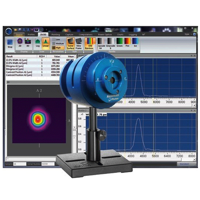 • Description: This NanoScan scanning-slit profiling system accurately captures and analyzes wavelengths from 190nm - 1100nm with its Silicon detector. It features a slit size suitable for small beams, near real-tim