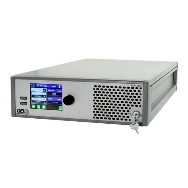 The PCX-7401 may be operated through its intuitive front panel controls. The color LCD provides immediate visual confirmation of all operating parameters. All system configurations may be stored and recalled in the internal non-volatile memory. Automated applications can utilize RS-232, USB or Ethernet computer interfaces.