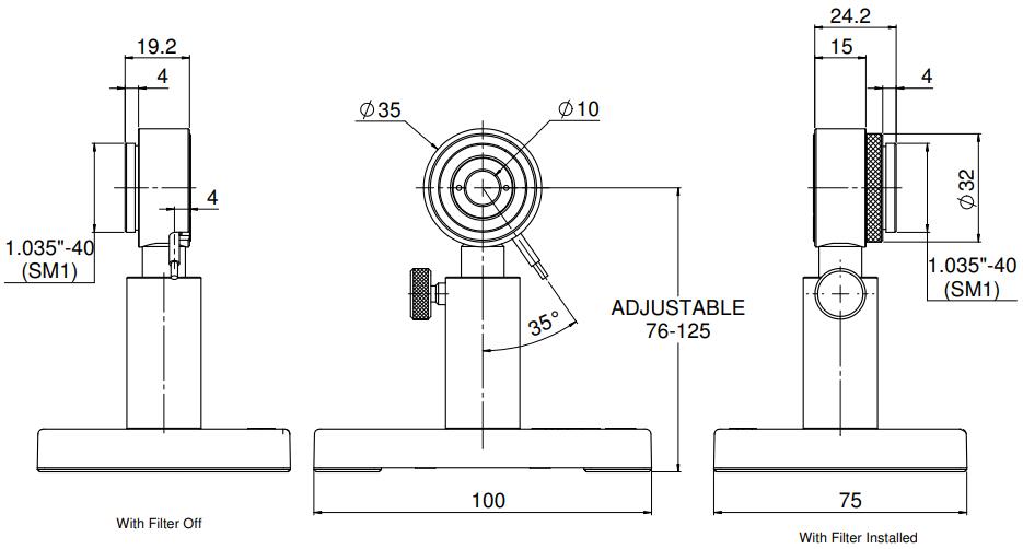 PD300R-3W is a cylindrical geometry photodiode laser measurement sensor, which can measure up to 3W power. With 10mm aperture and removable filter. When the filter is not equipped, the spectral range is 350 - 1100nm, and the power measurement range is 5nW - 100mW. When assembling the filter, its spectral range is 430nm - 1100nm, and the power measurement range is 200 μ W - 3W. The sensor is equipped with a 1.5m cable for connection to an instrument head or PC interface.
