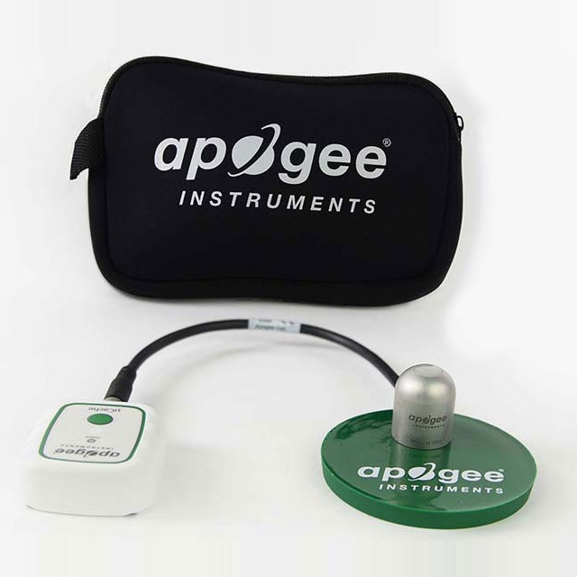 This promotional package includes a SP-110-SS self-powered, silicon-cell pyranometer, microCache Bluetooth micro-logger, an AA-090 protective Neoprene Case, an extra 2545 microCache battery, and an AM-020 Apogee PVC Sensor Platform. When paired, these two devices are a powerful tool for monitoring photosynthetically active radiation with research-grade accuracy for optimal plant growth. The SQ-100X sensor is a trusted industry standard for making accurate PPFD measurements.