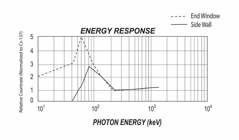 Detector | Internal Halogen-quenched, uncompensated GM tube with thin mica window, 1.4-2.0 mg/cm2 areal density. Effective diameter of window is 45 mm (1.77 in.). |