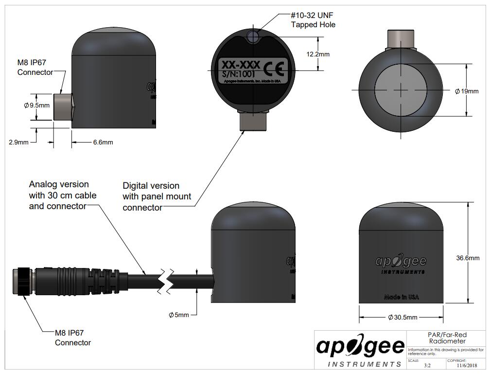 Spectral Ranges | 389 to 692 nm ± 5 nm (PAR); 700 to 750 nm ± 5 (Far-Red) |