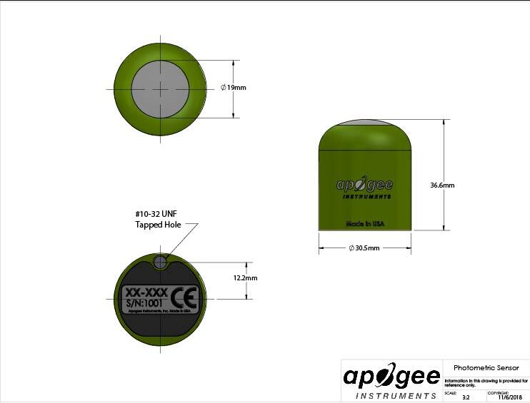 • Description: The SE-100 Photometric sensor is a self-powered lux sensor with a range of 0-150000 lux over a 0 to 200 mV range. The sensor features a rugged, aluminum housing that is fully-submersible and is built