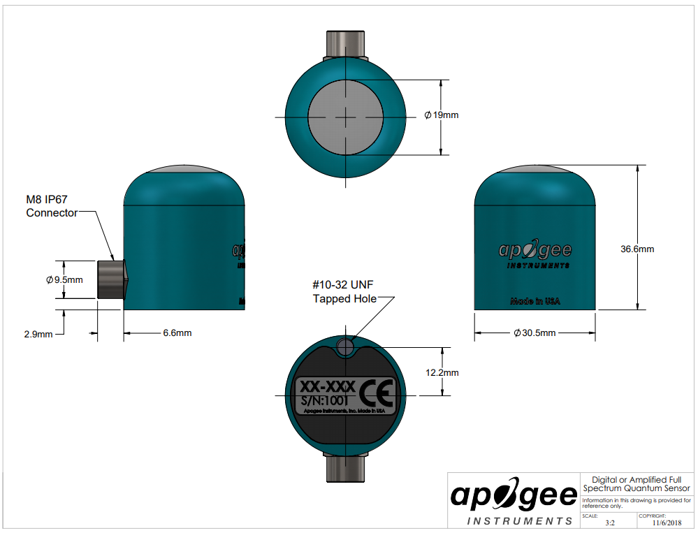 Non-linearity Less than 1% (up to 4000 μmol mˉ2 sˉ 1)