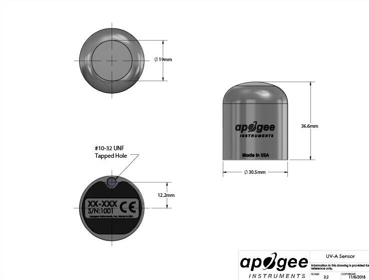 The SU-200-SS is an unamplified analog sensor with a voltage output and high-quality cable terminating in pre-tinned pigtail leads for easy connection to dataloggers and controllers. The sensor offers a low-cost option for detecting UV radiation from 300 to 400 nm and are calibrated in energy flux units of Watts per square meter. Typical applications include monitoring the filtering ability and stability of various materials, measuring UV-A radiation in outdoor environments and laboratory use, and monitoring UV radiation in horticultural operations environments. Sensor includes IP68 marine-grade stainless-steel cable connector 30 cm from head to simplify sensor removal and replacement for maintenance and recalibration.