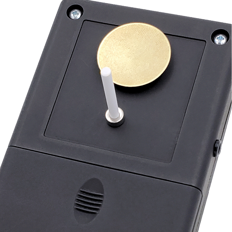 This meter is not recommended for long-term automated measurements,such as connection to a data acquisition system. Note that the included output jack is an analog voltage that is 1/10000 of the actual voltage at 25 mm distance. It represents the true waveform including DC and transients (such as AC). The output is intended to be plugged into a multimeter, oscilloscope, or ADC system. This meter should be manually reset at least every 20 minutes in case the sensor had acquired any charge, and at very strong ion levels (if a lot of sparking is present), external ions will add enough charge that the reset must be done more frequently. (For a stable electrostatic voltmeter which is chopper stabilized [“field mill”], so it can be used for long-term automated measurements without ever needing to be reset, use the Ultra Stable Surface DC Volt Meter USSVM2.)