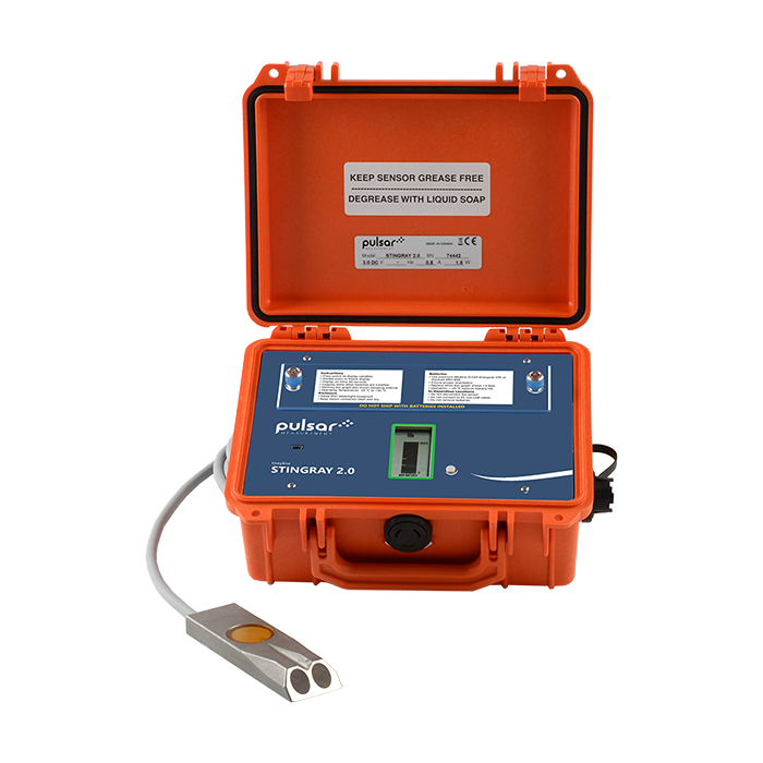 The Stingray 2.0 is a portable level-velocity logger, with free Logger Software for the calculation of flow as an open channel meter. The design is compact, portable, and battery-powered which makes it a fantastic instrument for open channel flow measurement. Using four standard Alkaline D-cell batteries to operate as a battery-powered data logger, the unit is a complete area velocity logger with an ultrasonic sensor that data logs level, velocity, and water temperature for flow monitoring through open channels, partially full sewer pipes and surcharged pipes.