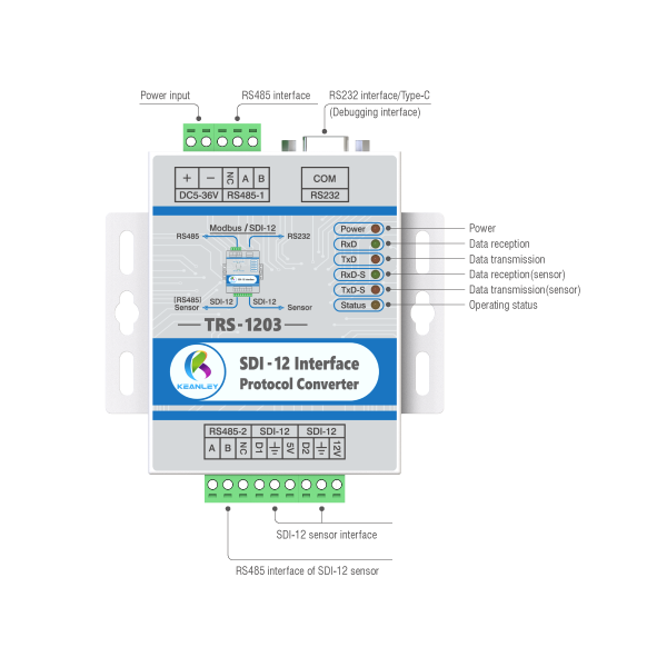 The SDI-12 Interface Protocol Converter, an advanced device widely used in fields such as agriculture, environmental monitoring, meteorological research, and hydrological measurement, etc., has features of high reliability, stable performance, and easy operation, which can effectively convert data between SDI-12 interface and other interfaces, providing users with a convenient and fast user experience.