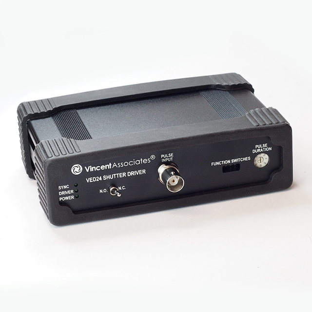 The Uniblitz VED24, or Versatile Electronic Driver, provides simple, straightforward shutter control. The device is single-channel, and is compatible with both uni-stable and bi-stable shutter devices. Operation options include manual shutter control, external triggering, and remote computer interfacing. Exposure is determined by external pulse (Active-Low, TTL), computer interface, or switch contact.