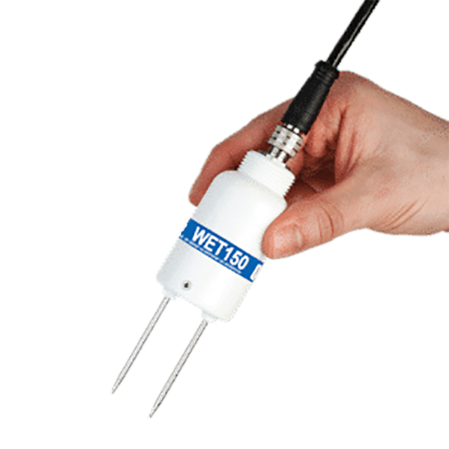 Soil science – The WET150 is easily integrated into SDI-12 systems and delivers research-grade accuracy and reliability for researchers monitoring soil or substrate conditions. Typical areas of use include irrigation research, crop trials, phenotyping, hydrology, soil water profiling, and forestry.