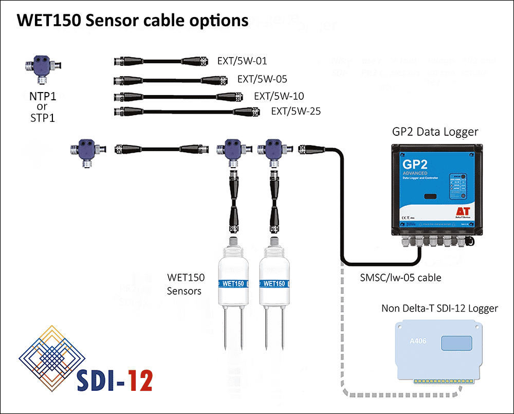 Up to 62 WET150s can be connected to a single GP2 SDI-12 Data Logger (subject to cable length and power requirements).